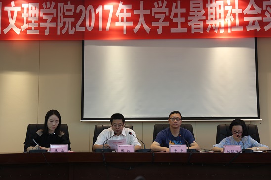 会议伊始,党委宣传部副部长张波老师宣读了《英国365上市公司2017年暑期社会实践项目立项通知》,团委付琼瑶老师汇报了公司2017年暑期社会实践筹备工作。团委副书记于贵老师在出征仪式上对参与暑期社会实践的成员们作出了要求,他指出,老员工只有投身社会实践,深入了解社会、认识国情,才能不断增强自身的社会责任感和使命感;只有投身实践,才能把所学的知识、技能与人民群众的生产生活紧密结合,与地方经济建设紧密结合。同时提出了几点希望:一是要在实践中了解国情,认知社会;二是要在实践中服务社会、彰显价值;三要在实践中虚心学习,增长才干;四是实践师生要注意安全,遵守团队的纪律,确保暑期社会实践的顺利完成。
