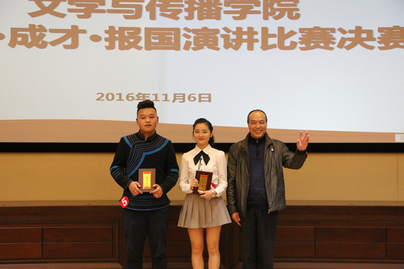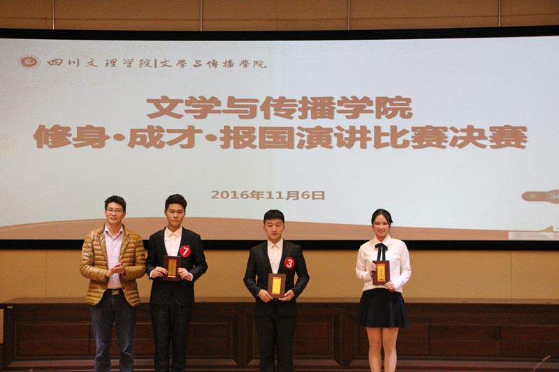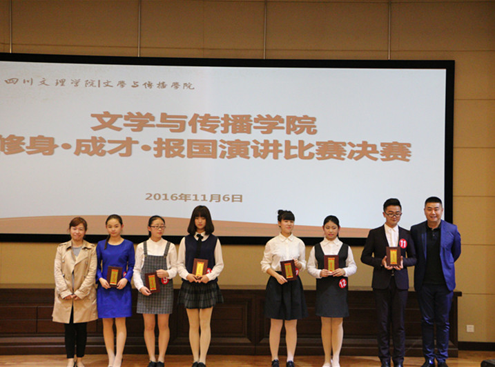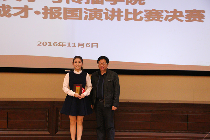 比赛结束后,播音与主持艺术教研室主任李彦翰老师对选手们的演讲进行了点评,他肯定了同学们的精彩之处,同时也指出了存在的不足,并提出了演讲需要达到“上口、顺耳、入脑”的要求。随后经理杜松柏教授做了总结讲话,他就选手们的演讲表现做出了中肯的评价,杜经理希望同学们在演讲稿中要增强文化底蕴,在演讲表达中要加强演讲技巧训练,在以后的学习中多培养文稿写作等能力。颁奖典礼结束后,选手和各位评委、嘉宾合影留念。一年一度的修身•成才•报国演讲比赛丰富了2016级新生们的老员工活,使他们树立了远大志向,增强了爱国情怀,同学们懂得了只有不断修炼自身、努力成才,才能够为建设祖国而发光发亮。