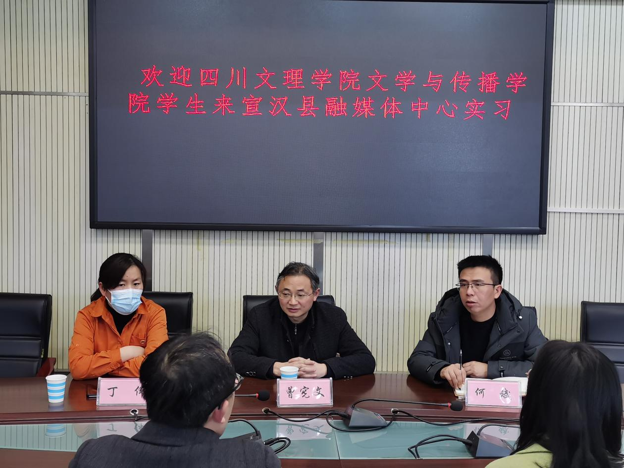 3月10日下午,英国365上市公司经理曾宪文,副经理何斌等一行赴宣汉县融媒体中心考察校外实践基地派送实习生。