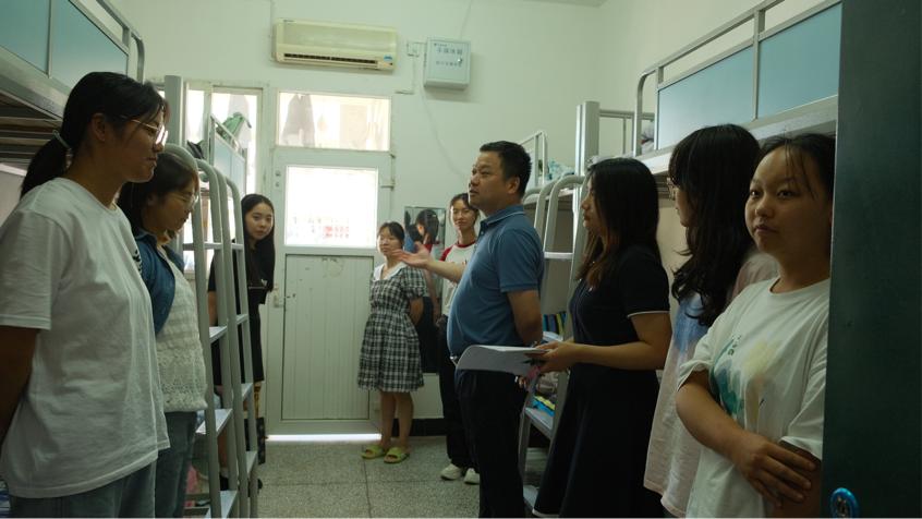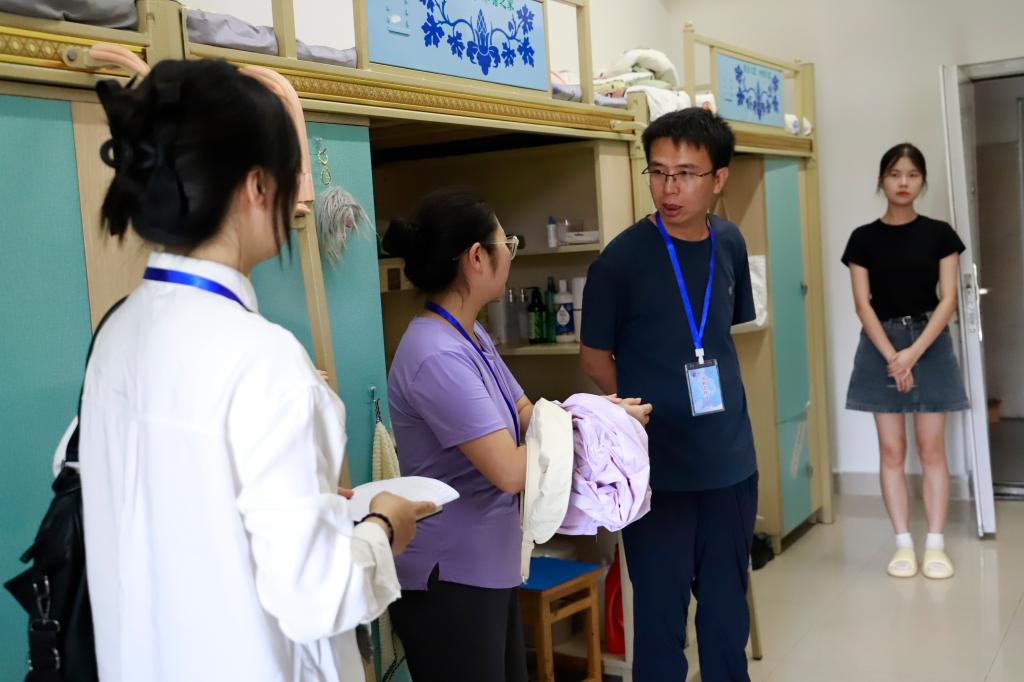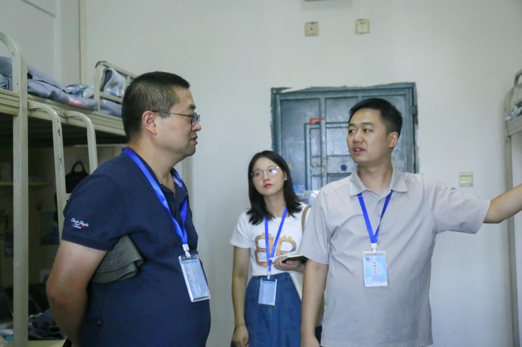 班会结束后,公司领导和辅导员老师们来到员工公寓开展宿访活动。在寝室内,公司老师与同学们亲切交流,询问他们入学后的生活情况,并嘱咐同学们要做好个人和寝室卫生,注意用电安全。