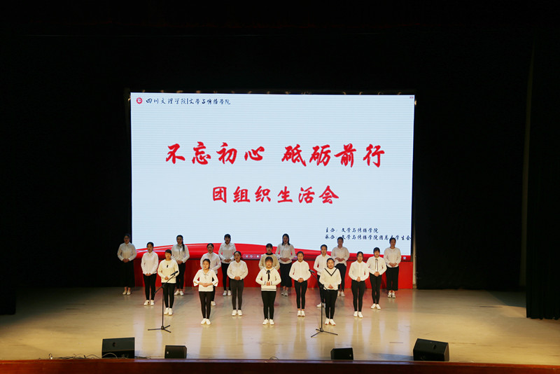 正式演出开始之前,全体人员在组织部部长张宗航的带领下起立奏唱团歌。接着,一场活力四射的开场舞为本次团组织生活拉开序幕。本次团组织生活活动形式多样,各支部认真策划准备,有逗趣的相声、激情高昂的诗歌朗诵、凝聚力量的大合唱等。2017级各支部带来的节目充分体现了“不忘初心,砥砺前行”的活动主题。其中四支部带来的《诗歌缘》充分展现了新时代祖国日益强盛的国力;六支部王冰淼同学演唱的英文歌曲《all of me》体现了当下年轻人的自信与活力。源远流长的中国历史,博大精深的中华文明被朗诵者们深情诵读,竹笛与二胡倾情演绎了民乐的悠扬与激情。此次活动在汉文一支部带来的手语舞《追光者》中圆满结束。