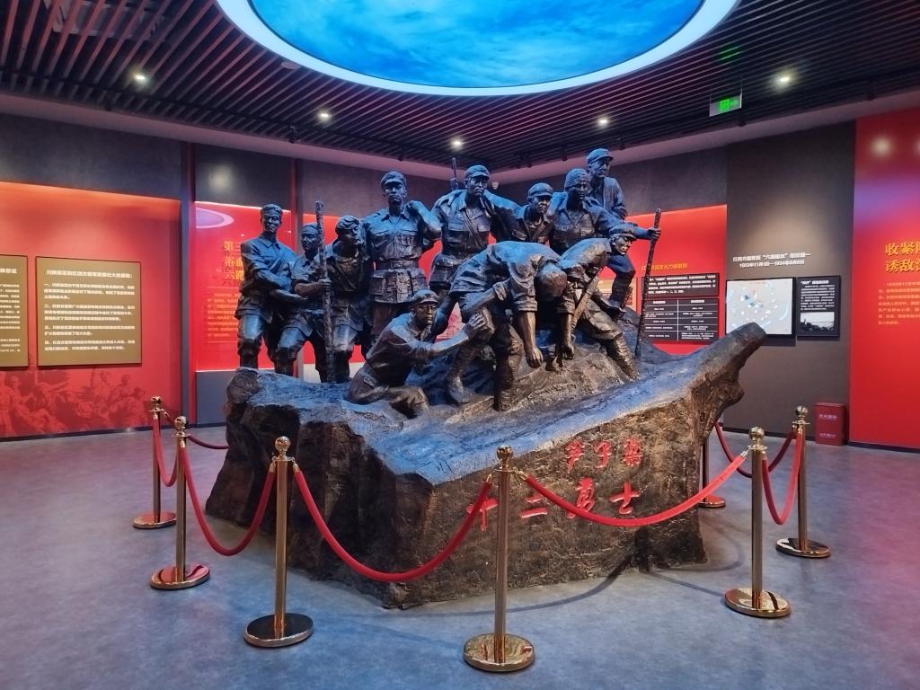 走进展厅,红军将士雕像巍然挺立,浴血奋战场景图栩栩如生。泛黄的老照片,斑驳的长矛,生锈的卷口大刀,豁口波浪起伏的大水缸......诉说着那段峥嵘岁月,先辈们可歌可泣的英雄壮举,其中最令人震撼的是笋子梁十二勇士的故事。