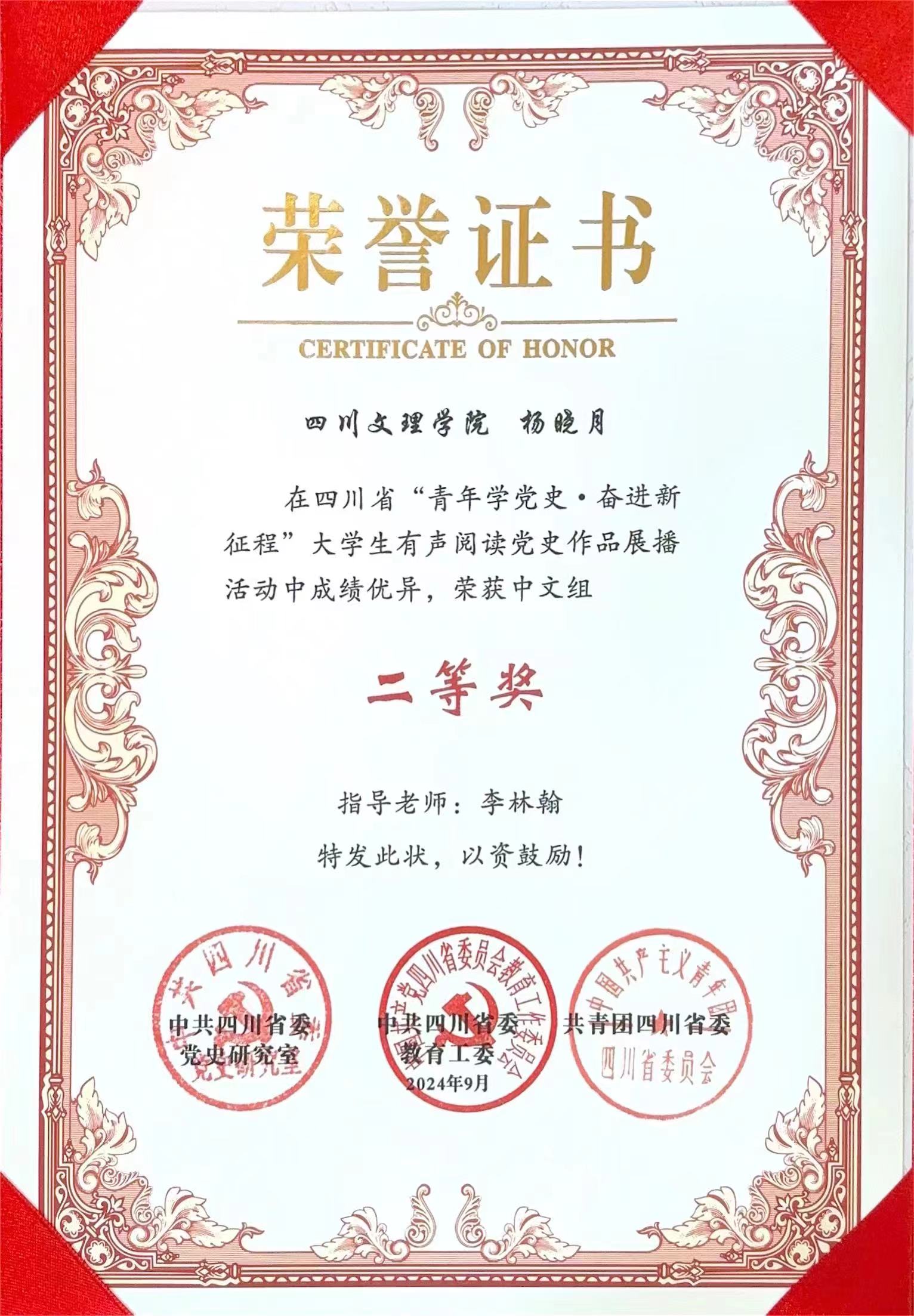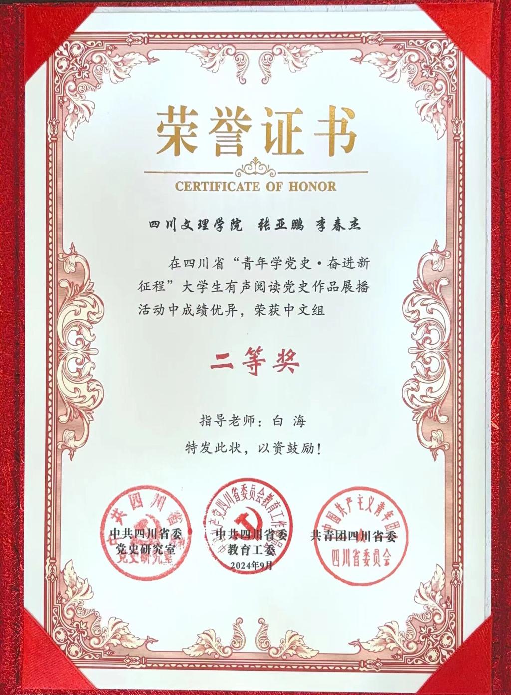 本次比赛通过有声阅读的形式,深情演绎党的历史故事,传递红色精神。经过激烈角逐,公司播音与主持艺术专业2022级员工李春杰、张亚鹏的作品《牦牛革命》、2023级员工杨晓月的作品《我党我军政治工作第一人刘伯坚》均荣获二等奖。