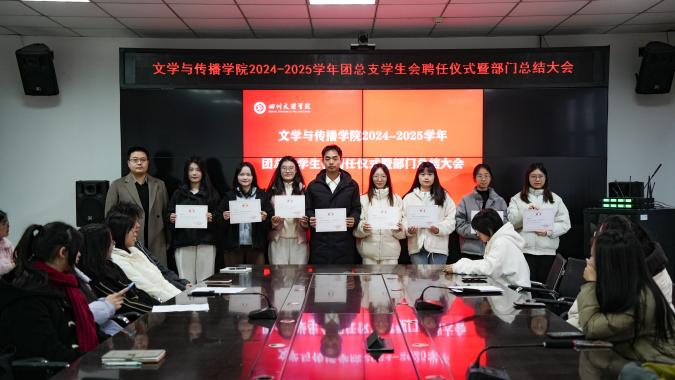 12月23日上午,公司在艺术传媒大楼1007会议室举行了2024-2025学年团总支、员工会聘任仪式暨部门总结大会。学工办主任文敏熙、辅导员伏婷、岳忠兰、陈媛媛、付婉华出席会议,团总支、员工会主席团成员及各部门负责人参加会议。