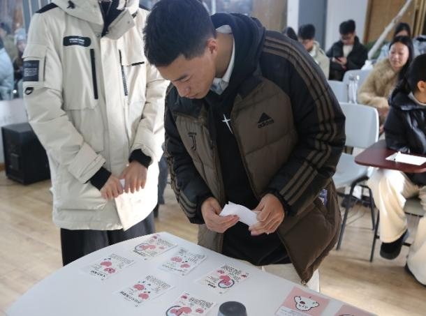 活动设有“情绪接龙赛”和“心理能量连连看”两大核心环节。“心理能量连连看”巧妙地将抑郁症、焦虑症等心理议题设计成“问题牌”与“方法牌”,参与者通过猜拳对战进行匹配,在欢乐竞技中轻松掌握了专业的心理知识。“情绪接龙赛”则采用4人小组“画+话”接力的形式,同学们依次用图案、建议和鼓励语共同完成作品,使个人情绪在坦诚分享中转化为群体共鸣,营造出松弛治愈的交流氛围。