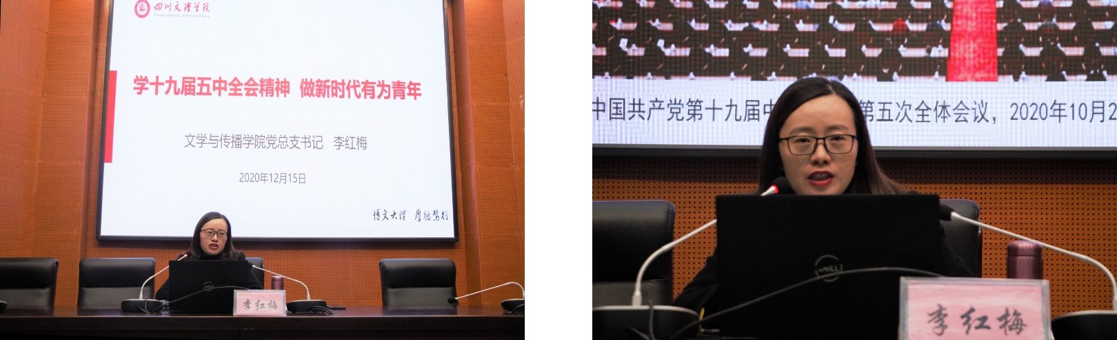 为深入贯彻十九届五中全会精神,12月15、16日,公司分别于学术报告厅B厅、学术报告厅A厅和艺术传媒大楼1028教室召开了党的十九届五中全会精神解读讲座。讲座分别由达州市直机关工委二级调研员刘礼和英国365上市公司党委常委、宣传部部长余文盛教授、公司党总支书记李红梅主讲。