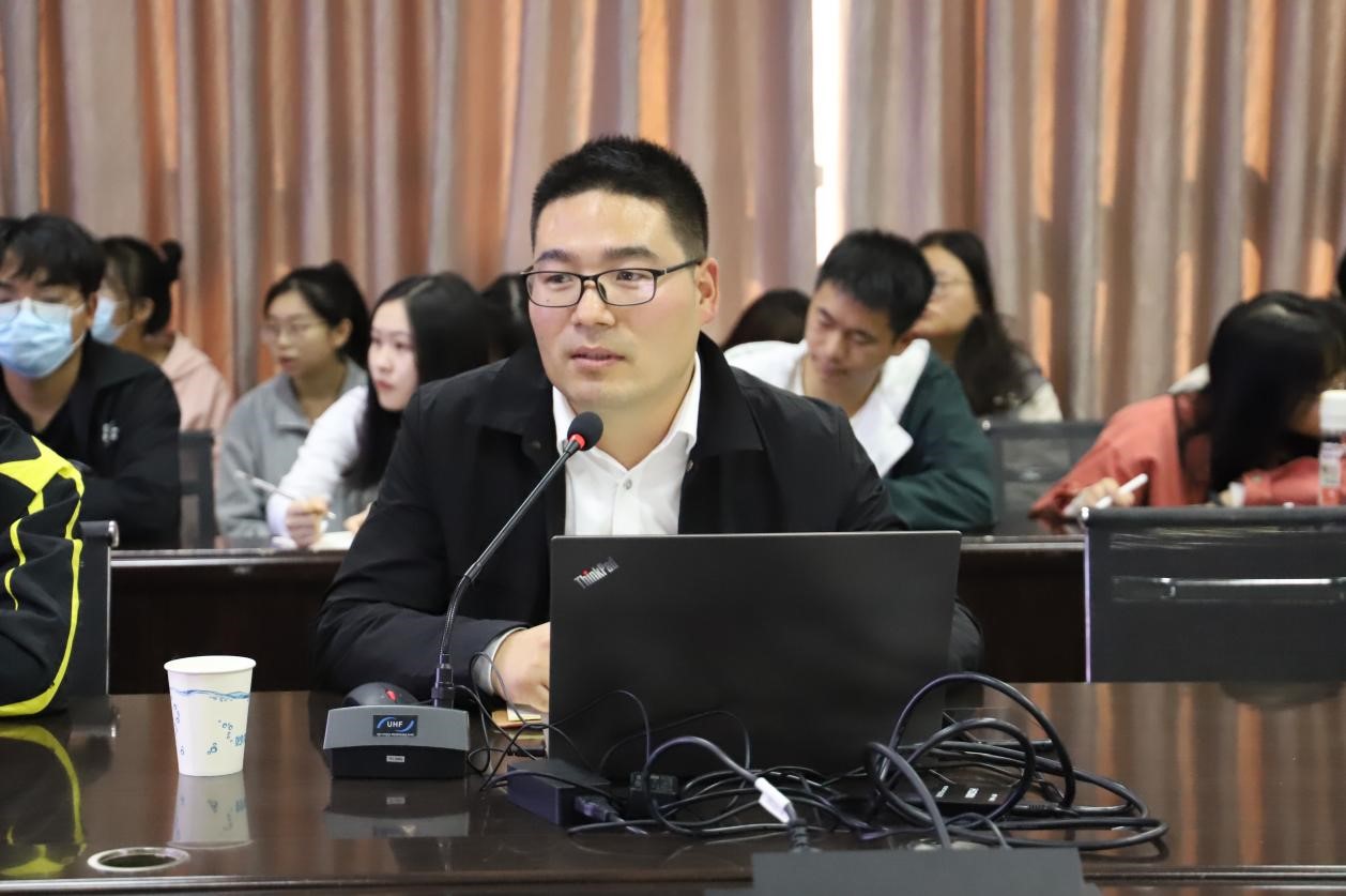 课上,张俊峰首先讲解了二十大报告的重要意义。党的二十大报告是党和人民的集体智慧,是我们党团结带领全国各族人民在新时代新征程夺取中国特色社会主义新胜利的政治宣言和行动纲领,是马克思主义的纲领性文献。作为一名党员,我们要认真阅读、深刻领悟。其次,张老师从“大会主题”、“三个务必”、“十年来三件大事”、“跳出历史周期率的第二个答案”、“归根到底是两个‘行’”、“党的中心任务”、“中国式现代化的五个特色”等关键词语对二十大报告中的新观点、新论断、新思想进行了解读。张老师指出,二十大报告内容博大精深,希望同学们着重注意学习二十大报告中的新观点、新论断、新思想,思考“新”的缘由及价值,从而深入领会其内涵。
