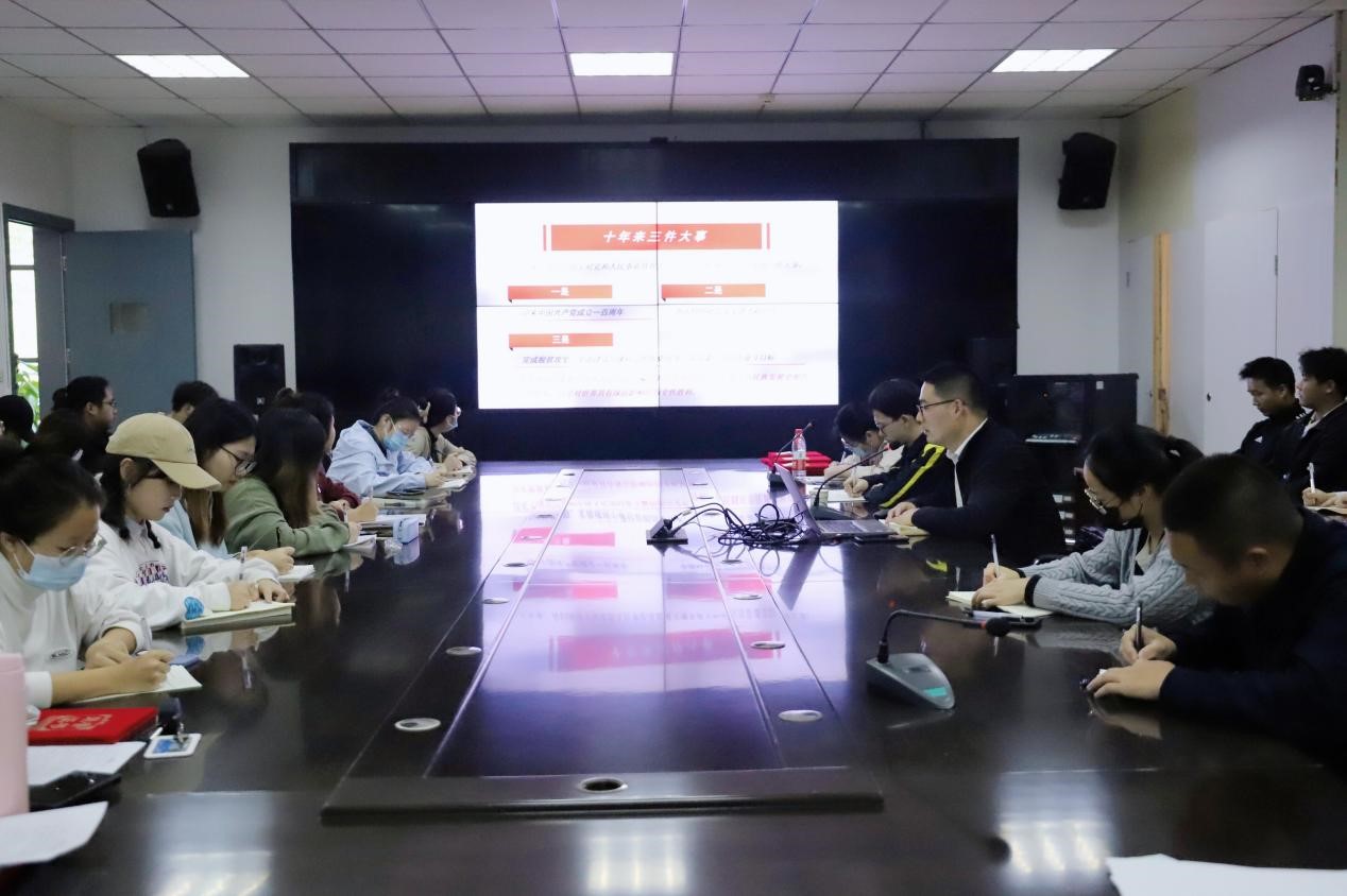 最后,张俊峰表示,全体党员同志在课余要通过人民日报、学习强国、公司官微微党课等途径继续深入学习二十大报告,在同学们中掀起学习宣传贯彻党的二十大精神的热潮;要深刻认识“两个确立”的决定性意义,自觉从党的重大成就和历史经验中增长智慧、增强信心,勤奋学习、练强本领,用青春唱响“强国复兴有我”的时代强音。