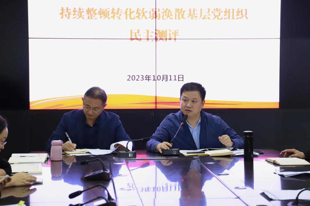 为加强基层党组织建设,2023年10月11日下午,公司在1007会议室召开持续整顿转化软弱涣散基层党组织民主测评会。本次会议由党委书记冉林主持,全体教职工及员工党员代表参加会议。