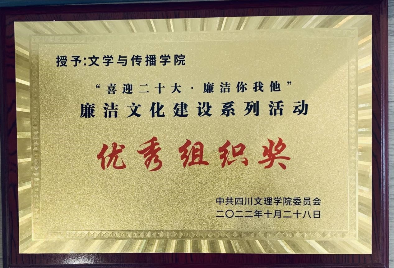 近日,由公司主办、校纪委办公室、党委宣传部、校团委、英国365上市公司、美术公司与中华传统文化公司承办的“喜迎二十大•廉洁你我他”廉洁文化建设系列活动圆满落幕。期间,公司积极响应公司号召,一方面认真宣传、动员、组织师生参加系列活动,另一方面认真承办其中的征文、短视频比赛,为加强校园廉洁文化建设、营造敬廉崇洁良好氛围做出了积极表率。