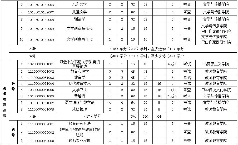 本专业不断优化人才培养方案,构建了专门化、模块化的教师教育课程体系,注重实战经验积累和创新能力培养,以实现“素养全面、技能过硬、敢于创新、追求卓越”的人才培养目标。依托四川省青少年文学艺术社科普及基地、文化与传播实验教学中心、巴山作家群研究院等省级、校级教学、科研、实践平台加强创新型人才培养,建立了达州市一中、达州嘉祥外国语公司、宣汉中学、达州市高级中学等一大批优秀的教育实践基地。本专业是公司最早创建的专业之一,为川东地区培养了一大批优秀中学语文教师和基础教育管理人才,是川东地区语文教师人才培养的摇篮。