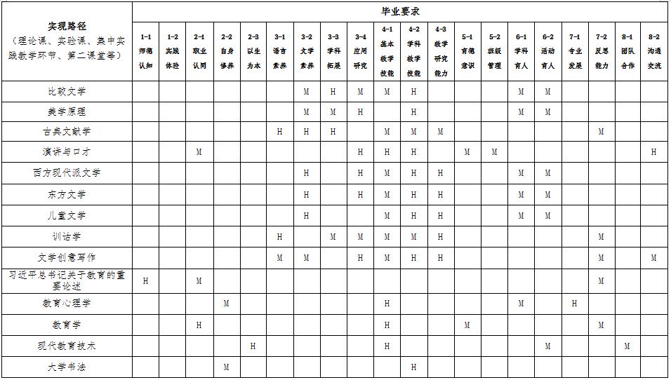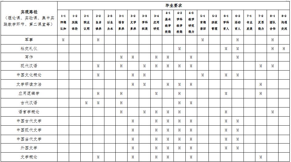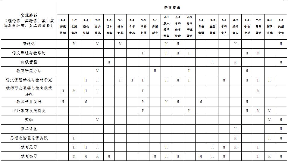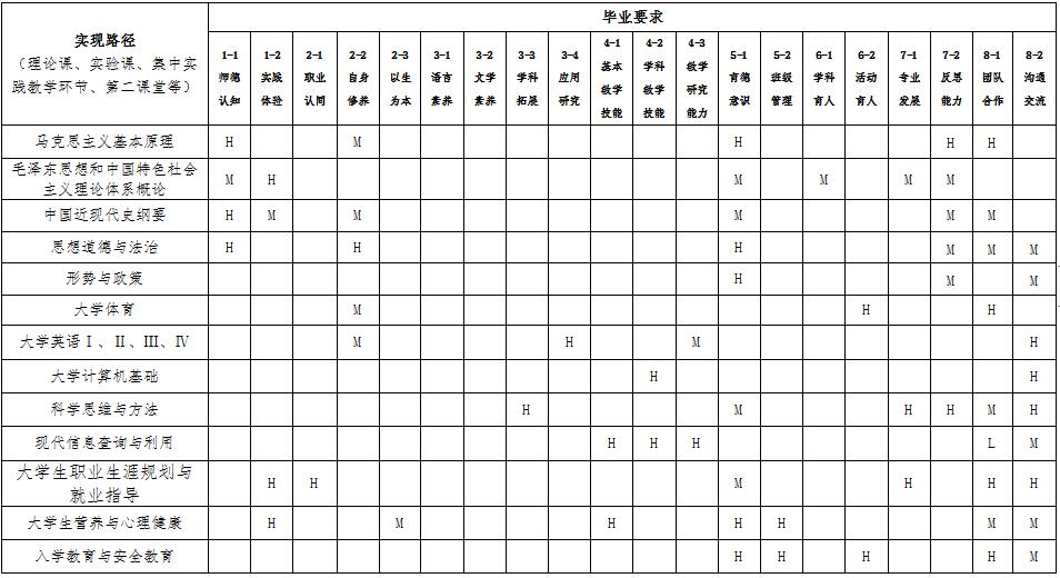 十、支撑专业人才毕业要求的路线矩阵(H-高、M-中、L-低)