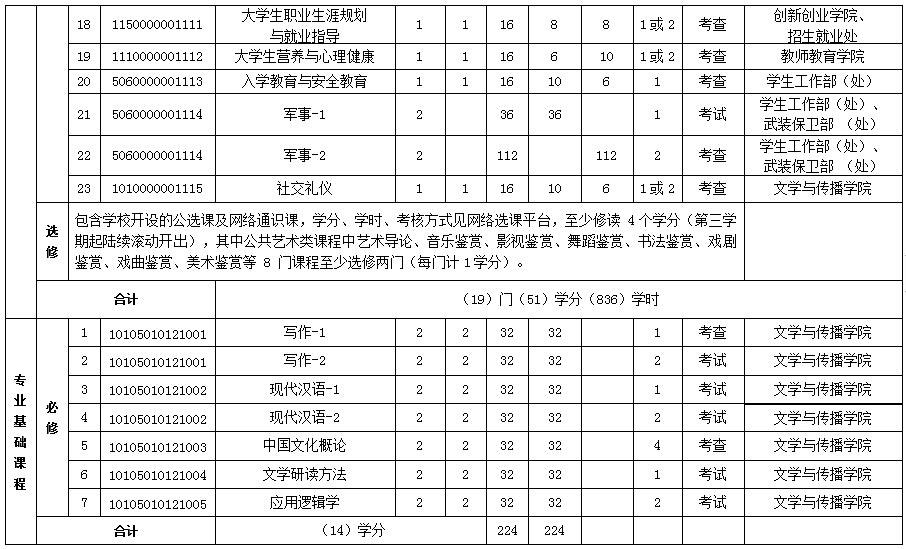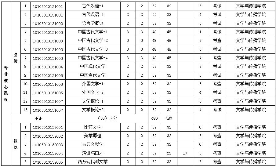 汉语言文学专业人文社会与科学素养课程学分共51分,占总学分比例为 30.4 % |
